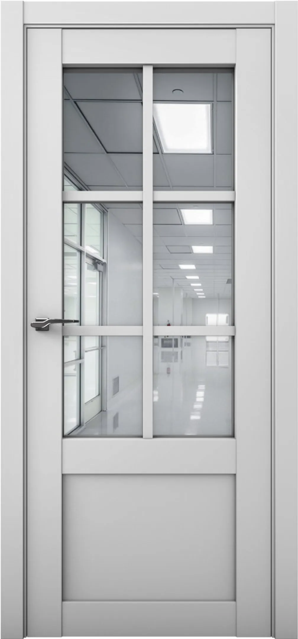 Межкомнатная дверь со стеклом Мадрид Белый кипарис Эко-шпон Стекло белое (ALBERO)