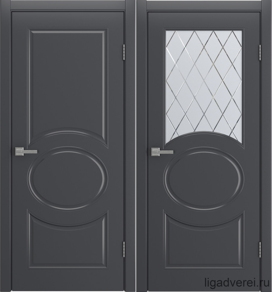 Межкомнатная дверь со стеклом Сеул Темный кипарис Эко-шпон Стекло графитовое (ALBERO)