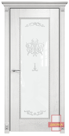 Фабрика Оникс / Александрия стекло триплекс белый контурный витраж №2 / цвет белая эмаль патина серебро / материал шпон