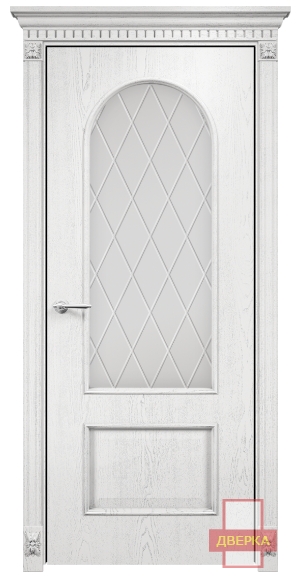 Фабрика Оникс / Арка стекло сатинат белый гравировка ромбы / цвет белая эмаль патина серебро / материал шпон