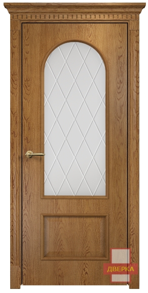 Фабрика Оникс / Арка стекло сатинат белый гравировка ромбы / цвет дуб золотистый / материал шпон