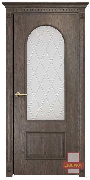 Фабрика Оникс / Арка стекло сатинат белый гравировка ромбы / цвет дуб античный / материал шпон