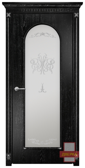 Фабрика Оникс / Арка 2 стекло сатинат белый контурный витраж №2 / цвет черная эмаль патина / материал шпон