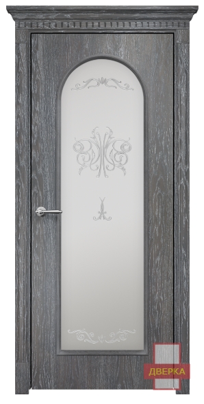Фабрика Оникс / Арка 2 стекло сатинат белый контурный витраж №2 / цвет дуб седой / материал шпон