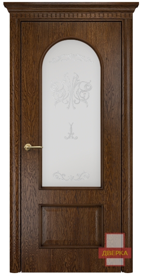 Фабрика Оникс / Арка стекло сатинат белый контурный витраж №2 / цвет дуб коньячный / материал шпон