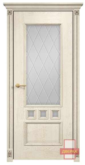 Фабрика Оникс / Амстердам стекло сатинат белый гравировка ромбы / цвет слоновая кость патина золото / материал шпон