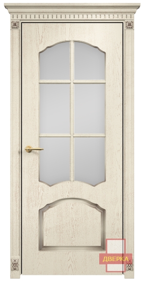 Фабрика Оникс / Диана стекло сатинат белый решетка / цвет слоновая кость патина золото / материал шпон