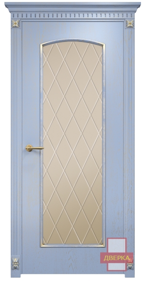 Фабрика Оникс / Глория стекло сатинат бронза гравировка ромбы / цвет голубая эмаль патина / материал шпон