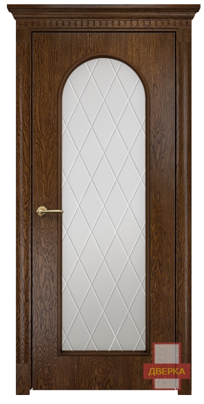 Фабрика Оникс / Арка 2 стекло сатинат белый гравировка ромбы / цвет дуб коньячный / материал шпон