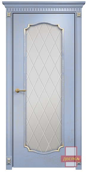 Фабрика Оникс / Венеция 2 стекло сатинат белый гравировка ромбы / цвет голубая эмаль патина / материал шпон
