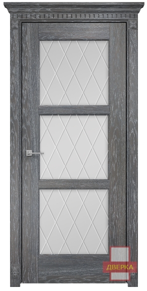 Фабрика Оникс / Квадро стекло сатинат белый гравировка ромбы / цвет дуб седой / материал шпон