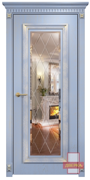 Фабрика Оникс / Мадрид 1 зеркало гравировка ромбы / цвет голубая эмаль патина / материал шпон
