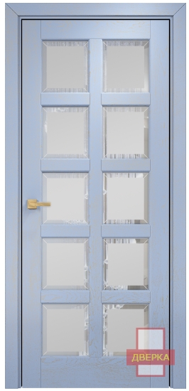 Фабрика Оникс / Вена 2 стекло сатинат белый фацет / цвет голубая эмаль патина / материал шпон
