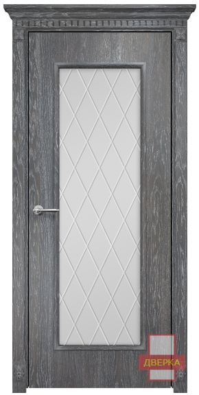 Фабрика Оникс / Турин стекло сатинат белый гравировка ромбы / цвет дуб седой / материал шпон
