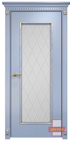 Фабрика Оникс / Турин стекло сатинат белый гравировка ромбы / цвет голубая эмаль патина / материал шпон
