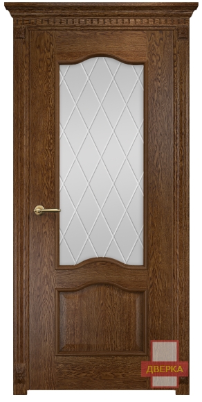 Фабрика Оникс / Классика стекло сатинат белый гравировка ромбы / цвет дуб коньячный / материал шпон