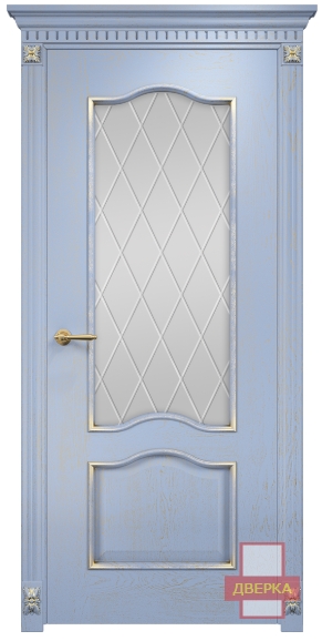 Фабрика Оникс / Классика стекло сатинат белый гравировка ромбы / цвет голубая эмаль патина / материал шпон