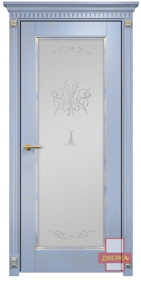 Фабрика Оникс / Италия 1 стекло сатинат белый контурный витраж №2 / цвет голубая эмаль патина / материал шпон