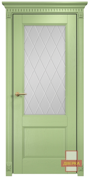 Фабрика Оникс / Италия 2 стекло сатинат белый гравировка ромбы / цвет эмаль фисташковая / материал шпон
