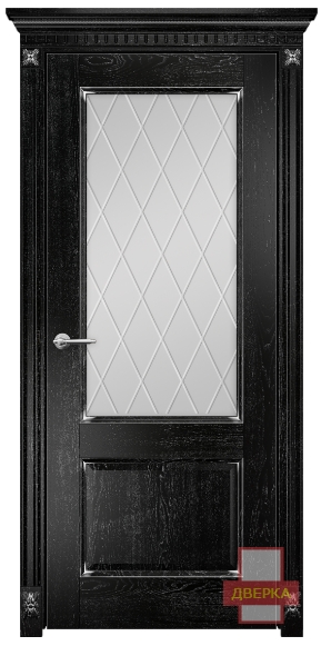 Фабрика Оникс / Италия 2 стекло сатинат белый гравировка ромбы / цвет черная эмаль патина / материал шпон