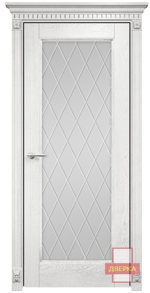 Фабрика Оникс / Италия 1 стекло сатинат белый гравировка ромбы / цвет белая эмаль патина серебро / материал шпон