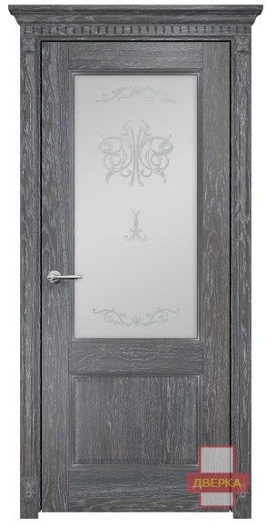 Фабрика Оникс / Италия 2 стекло сатинат белый контурный витраж №2 / цвет дуб седой / материал шпон