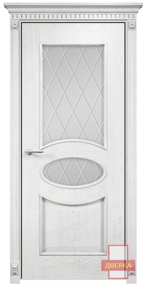 Фабрика Оникс / Эллипс стекло сатинат белый гравировка ромбы / цвет белая эмаль патина серебро / материал шпон