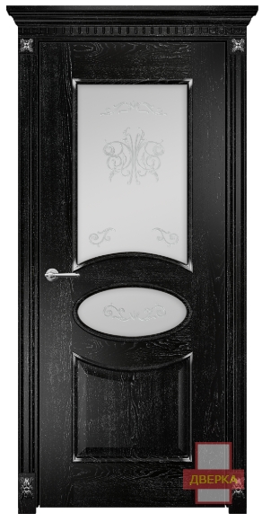 Фабрика Оникс / Эллипс стекло сатинат белый контурный витраж №2 / цвет черная эмаль патина / материал шпон