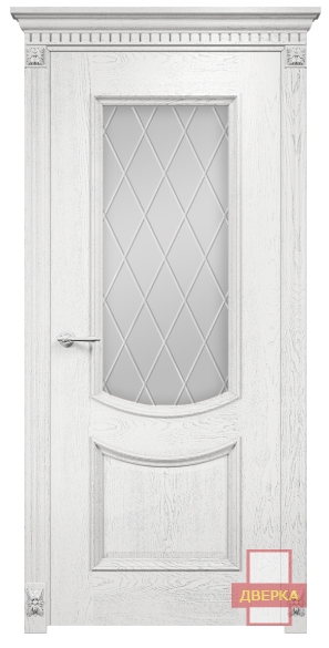 Фабрика Оникс / Рига стекло сатинат белый гравировка ромбы / цвет белая эмаль патина серебро / материал шпон