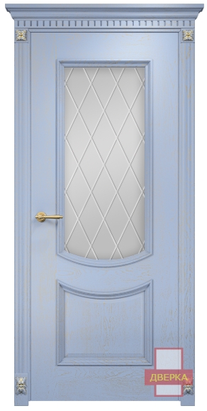 Фабрика Оникс / Рига стекло сатинат белый гравировка ромбы / цвет голубая эмаль патина / материал шпон