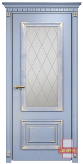 Фабрика Оникс / Мадрид стекло сатинат белый гравировка ромбы / цвет голубая эмаль патина / материал шпон