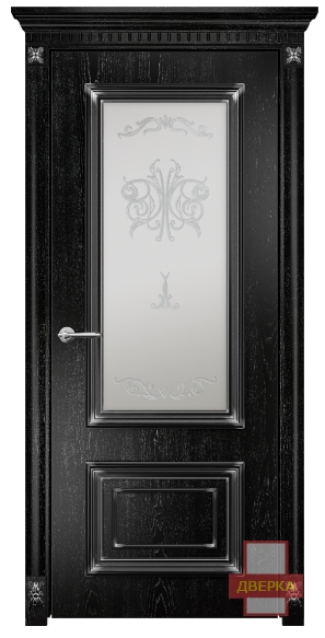Фабрика Оникс / Мадрид стекло сатинат белый контурный витраж №2 / цвет черная эмаль патина / материал шпон