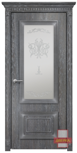 Фабрика Оникс / Мадрид стекло сатинат белый контурный витраж №2 / цвет дуб седой / материал шпон