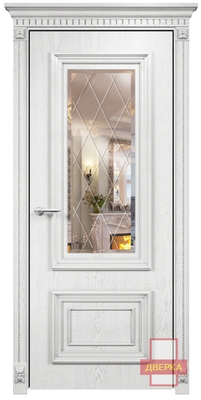 Фабрика Оникс / Мадрид зеркало гравировка ромбы / цвет белая эмаль патина серебро / материал шпон
