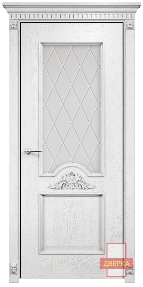 Фабрика Оникс / Византия стекло сатинат белый гравировка ромбы / цвет белая эмаль патина серебро / материал шпон