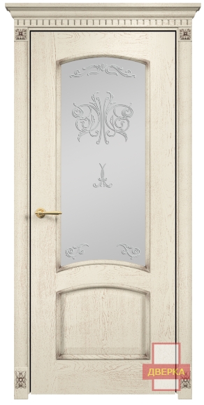 Фабрика Оникс / Прага стекло сатинат белый контурный витраж №2 / цвет слоновая кость патина золото / материал шпон