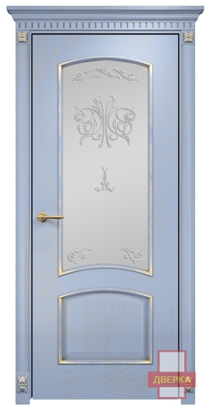 Фабрика Оникс / Прага стекло сатинат белый контурный витраж №2 / цвет голубая эмаль патина / материал шпон