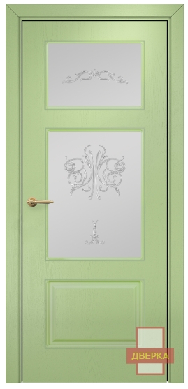 Фабрика Оникс / Прованс фрезерованное стекло сатинат белый контурный витраж №2 / цвет эмаль фисташковая / материал шпон