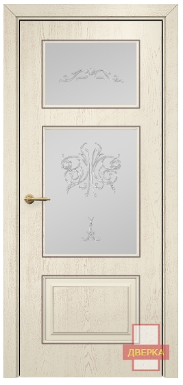 Фабрика Оникс / Прованс фрезерованное стекло сатинат белый контурный витраж №2 / цвет слоновая кость патина золото / материал шпон