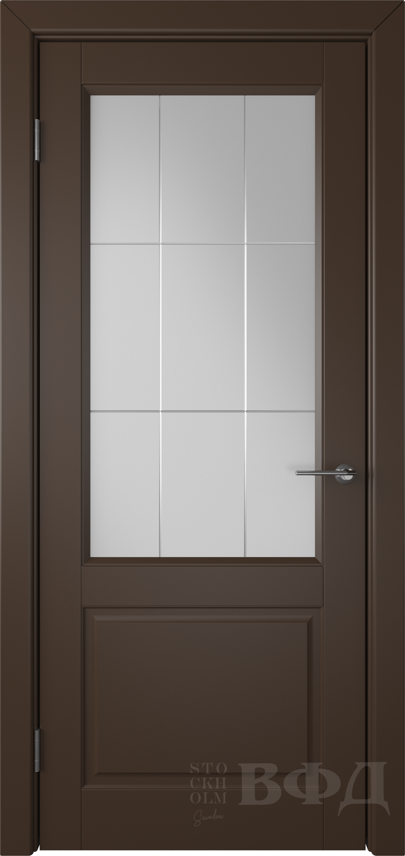 Фабрика Владимирская Фабрика Дверей / Доррен стекло белый сатин гравировка решетка / цвет эмаль шоколад / материал эмаль