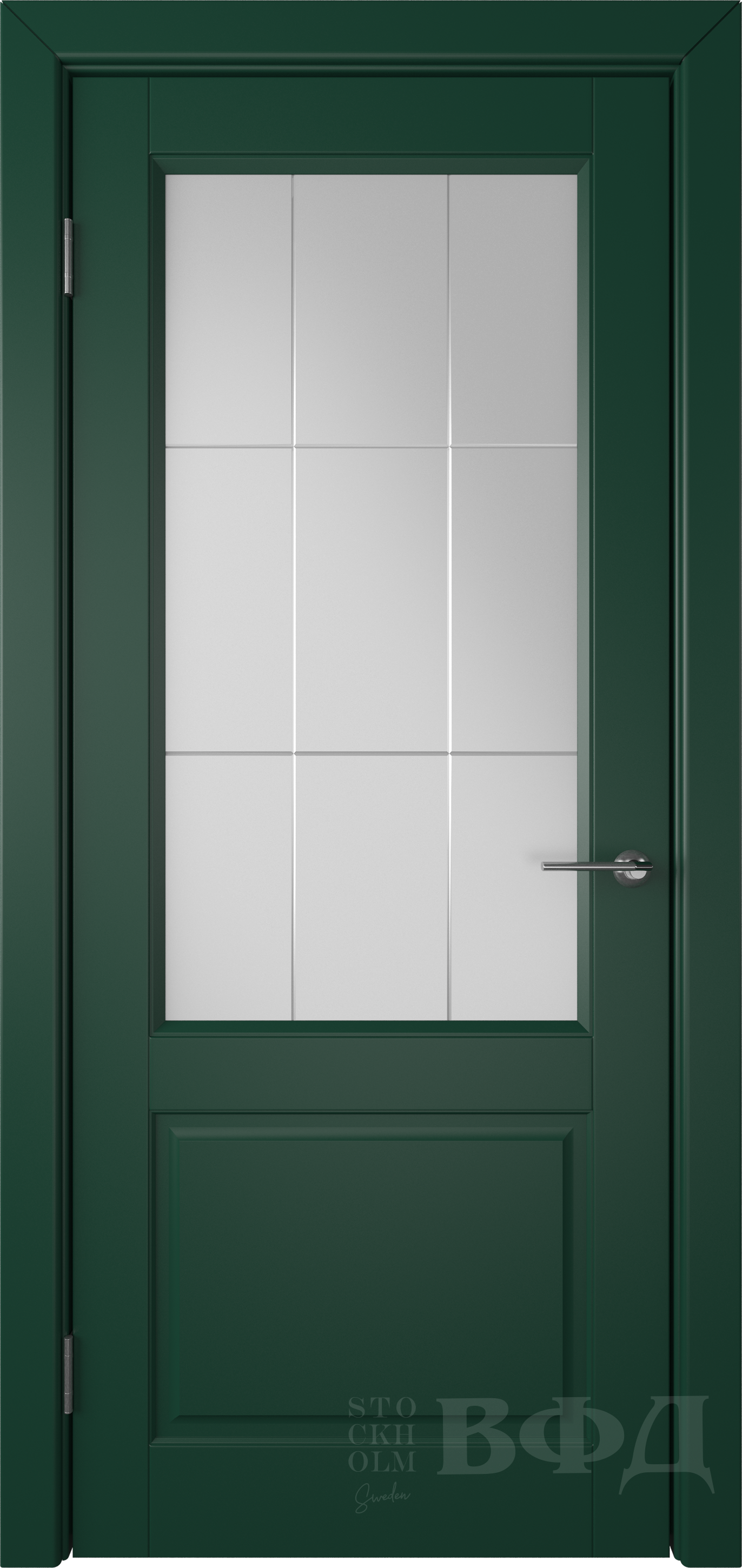 Фабрика Владимирская Фабрика Дверей / Доррен стекло белый сатин гравировка решетка / цвет эмаль зеленая / материал эмаль