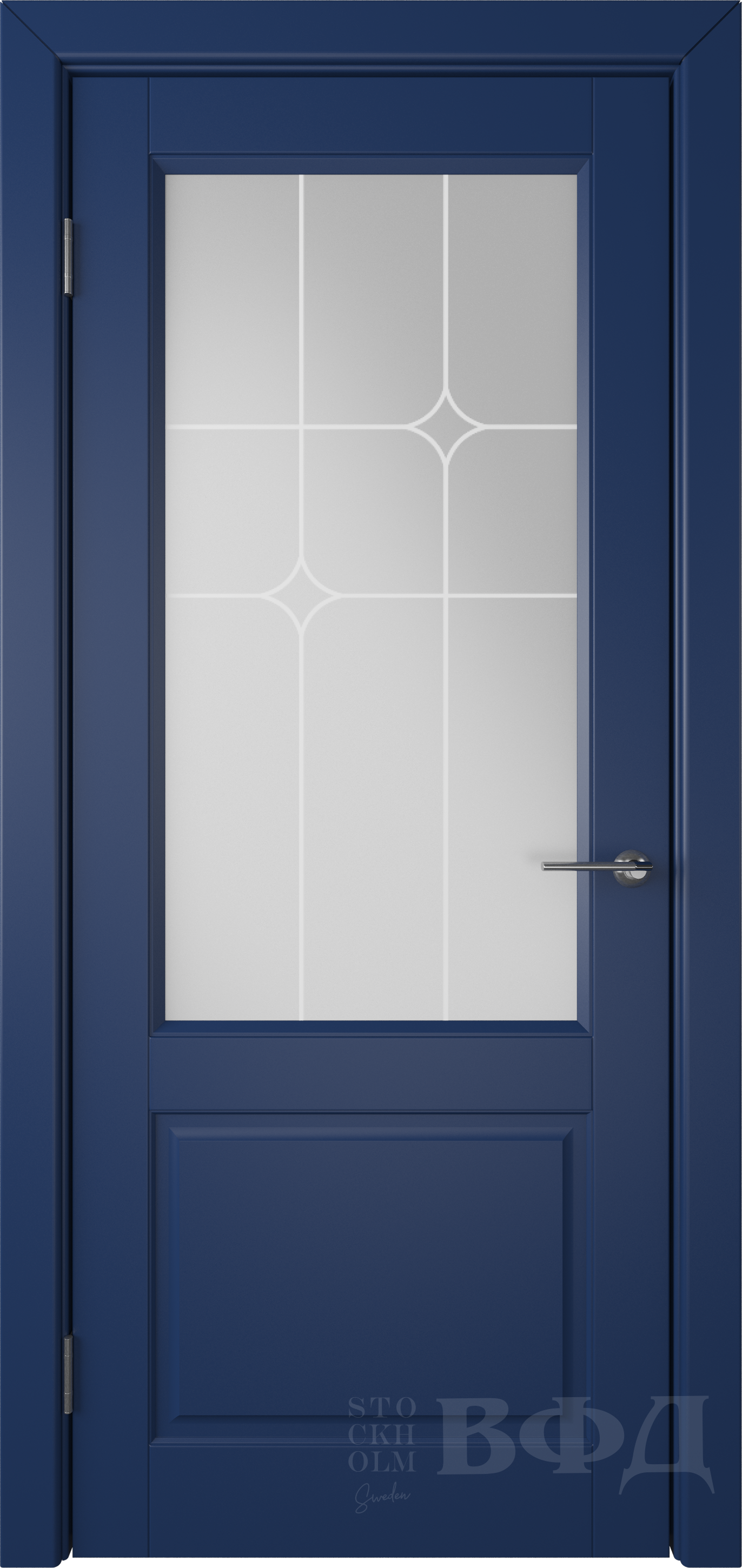 Фабрика Владимирская Фабрика Дверей / Доррен стекло белый сатин гравировка полосы / цвет эмаль синяя / материал эмаль