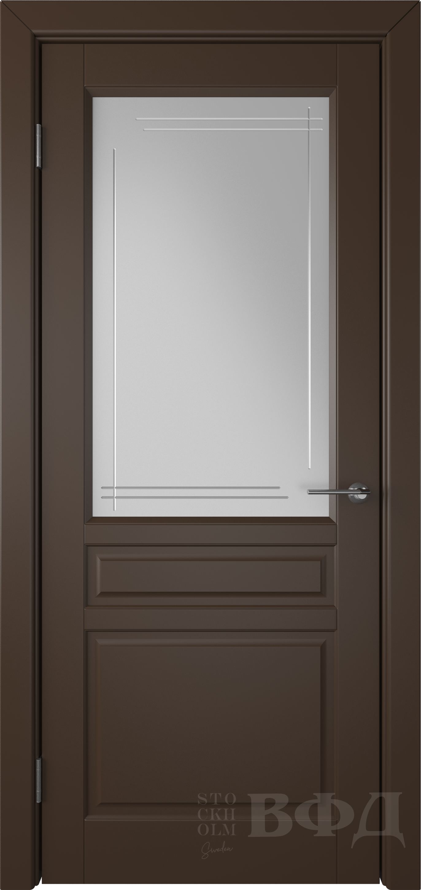 Фабрика Владимирская Фабрика Дверей / Стокгольм стекло белый сатин гравировка полосы / цвет эмаль шоколад / материал эмаль