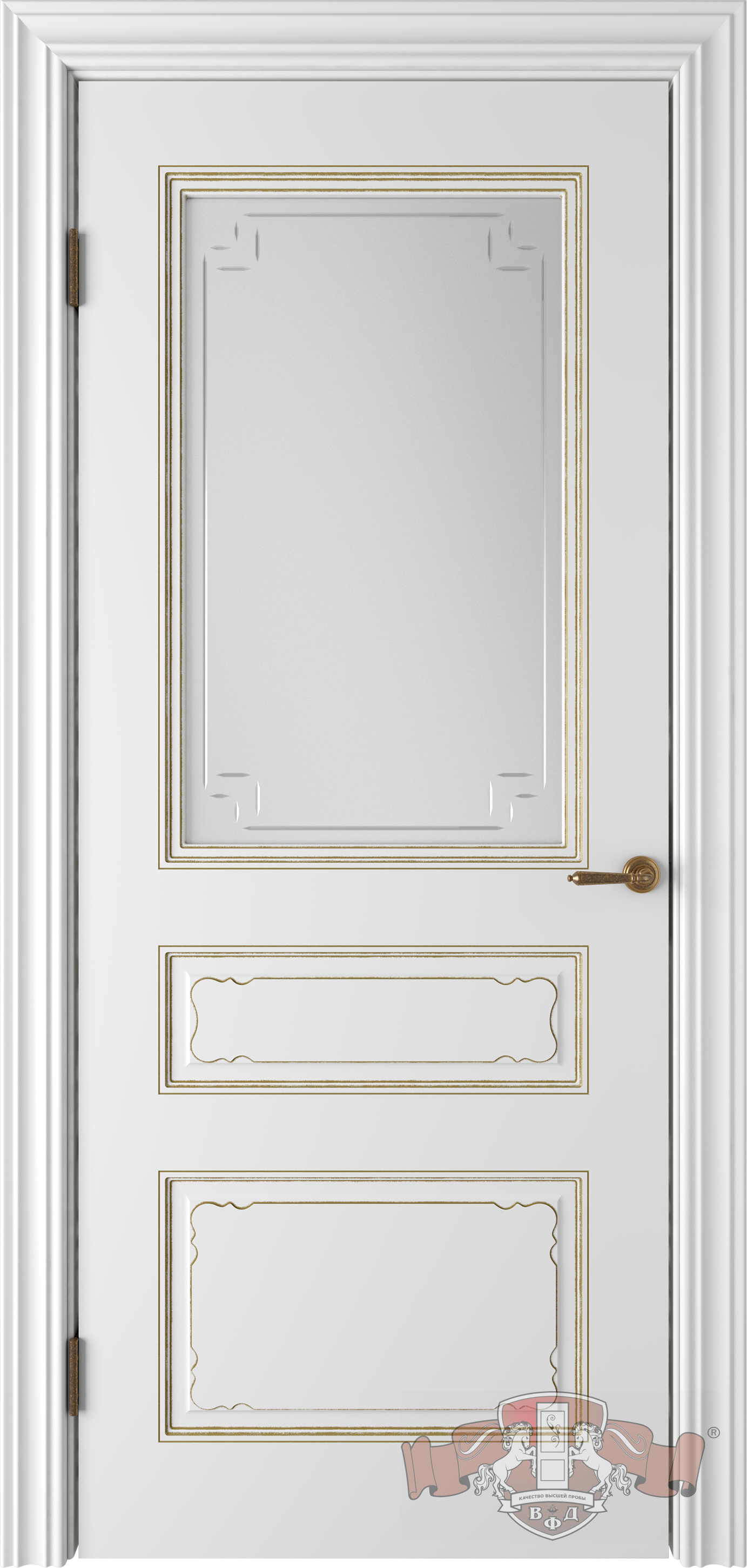 Фабрика Владимирская Фабрика Дверей / Верона 2 стекло / цвет эмаль белая патина золото / материал эмаль