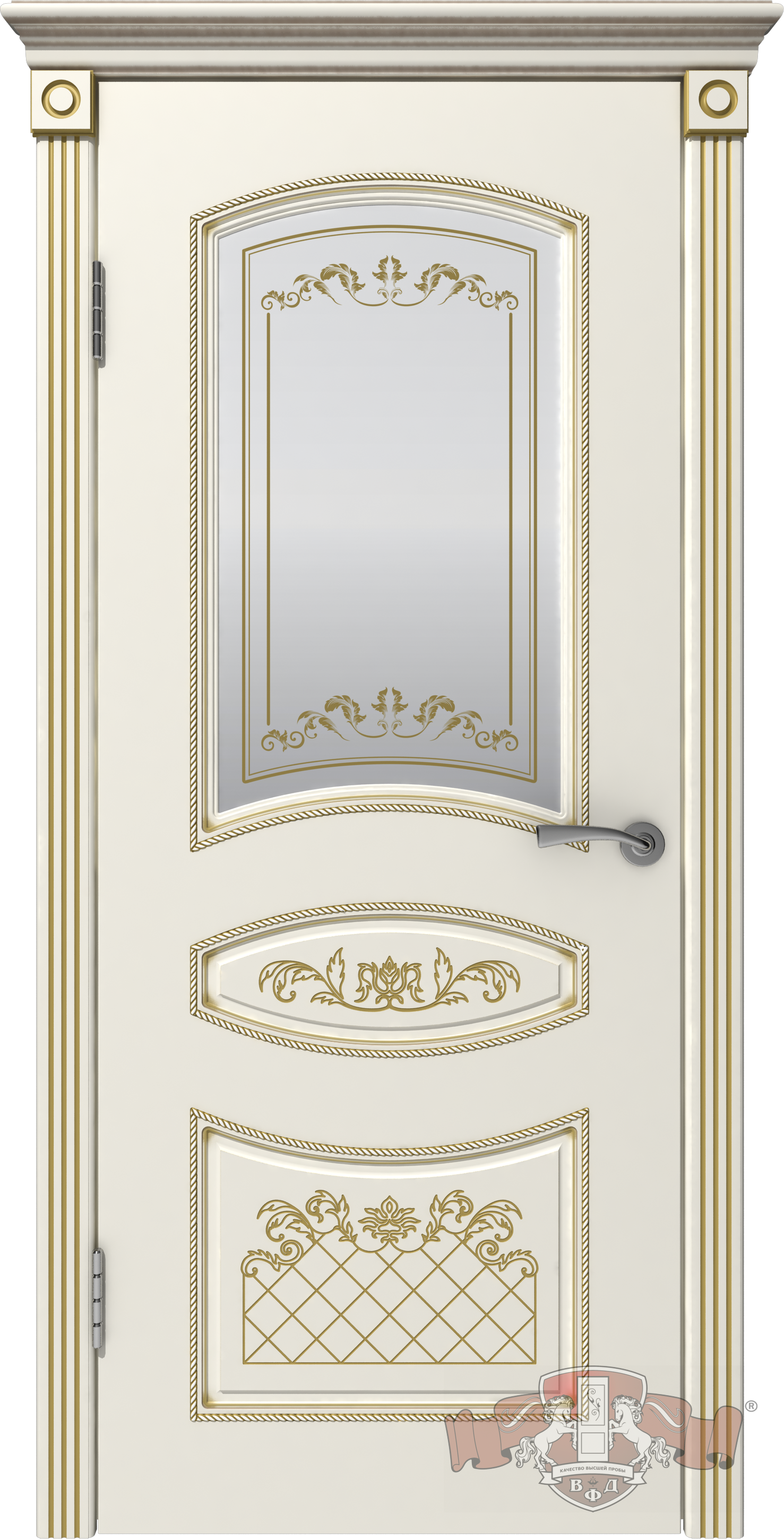 Фабрика Владимирская Фабрика Дверей / Адель стекло белое / цвет эмаль слоновая кость патина золото / материал эмаль