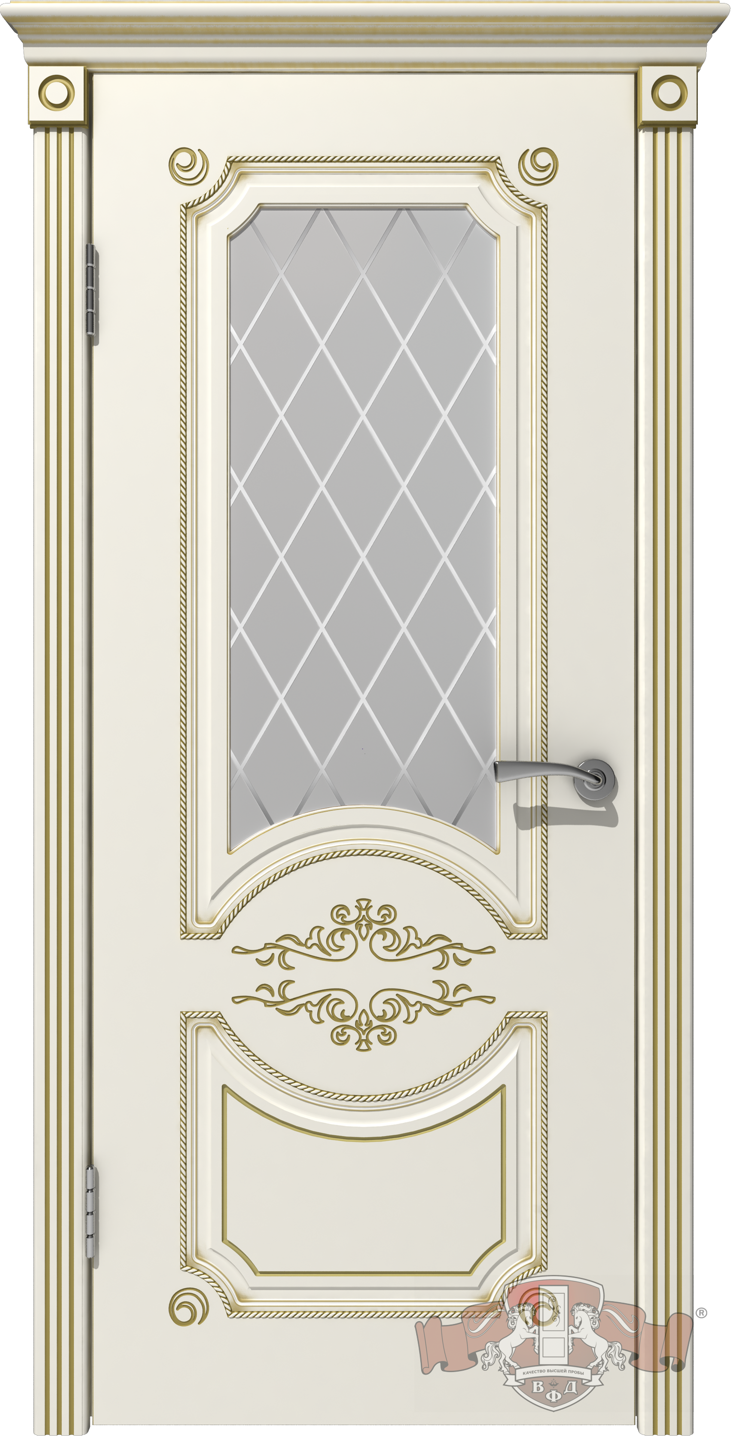 Фабрика Владимирская Фабрика Дверей / Милана стекло белое / цвет эмаль слоновая кость патина золото / материал эмаль