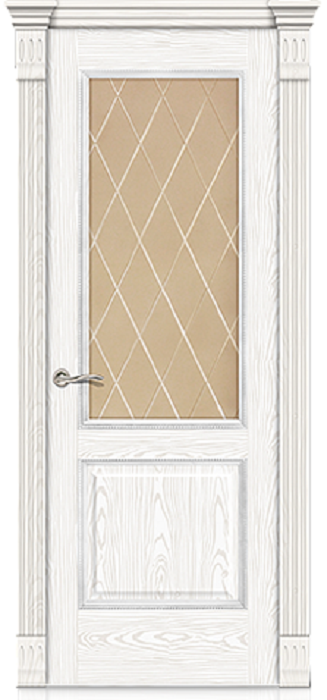 Фабрика СИТИДОРС / Бристоль-2 стекло бронзовое с алмазной гравировкой ромб / цвет белый ясень / материал шпон натуральный