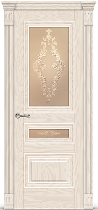 Фабрика СИТИДОРС / Элеганс-2 стекло бронзовое с алмазной гравировкой кружево / цвет ясень крем / материал шпон натуральный