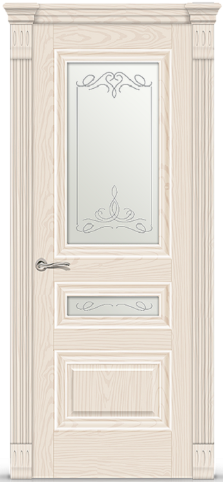 Фабрика СИТИДОРС / Элеганс-2 стекло белое с алмазной гравировкой романтик / цвет ясень крем / материал шпон натуральный