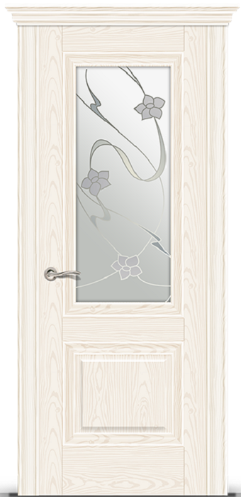 Фабрика СИТИДОРС / Элеганс-1 стекло белое с алмазной гравировкой очарование / цвет белый ясень / материал шпон натуральный